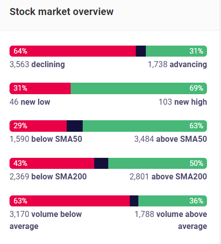 1. 참고할만한 상승/하락 종목수, 신고가/신저가 개수, 50일 및 200일 이동평균성 위/아래 개수,