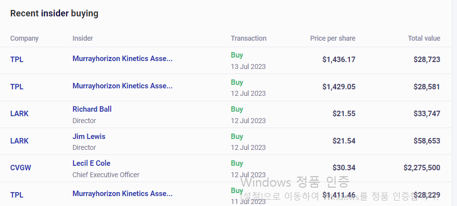 초록색이면 지난번 실적발표때 예상실적보다 더 좋았었다, 빨강색이면 예상실적보다 안좋았다.