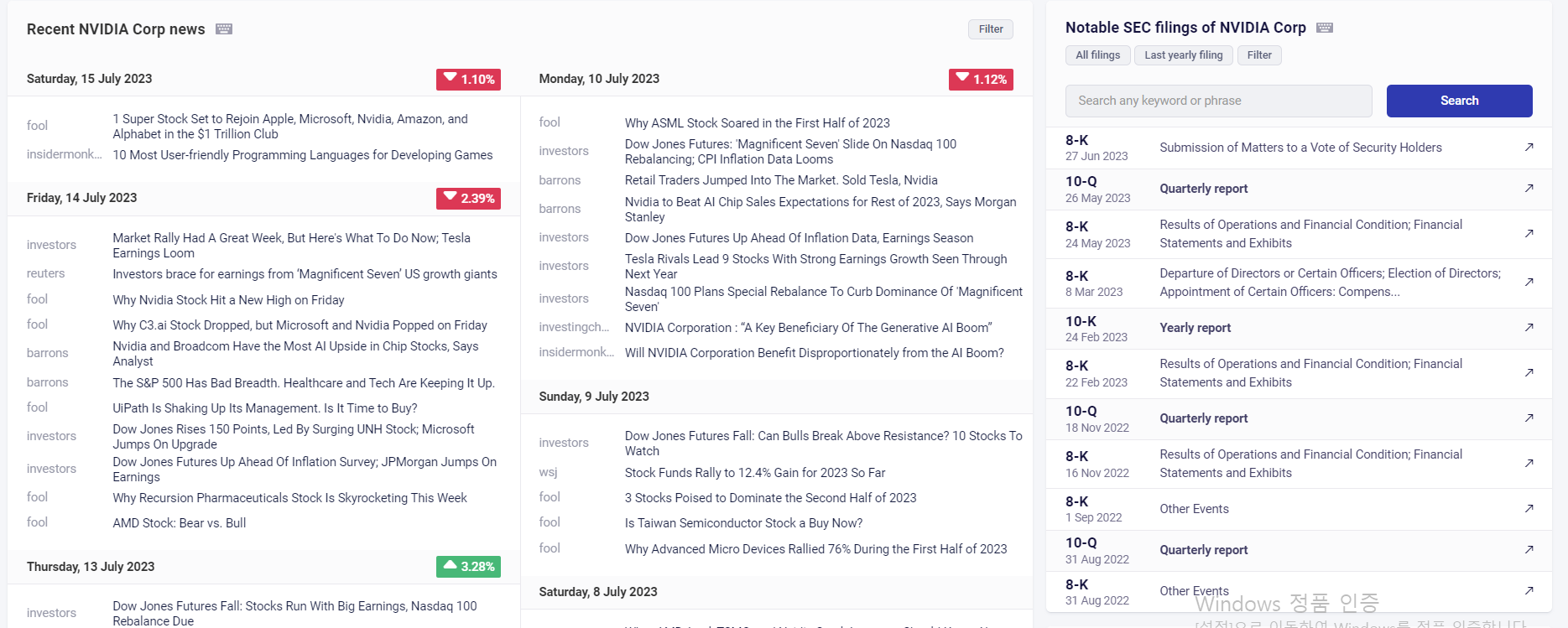 * 8-K, 10-Q등 : 분기별, 년도별 보고서 클릭하면 바로 켜짐